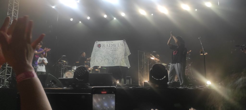 Btw, we were worried from the day before the show because RADWIMPS and members did not update anything. Usually they will be updated with something like, “Let’s goo,” or something. We were worried if they’d gotten sick or had no interest in Indonesia, or was it just me who had overthought? I knew, maybe you guys got a little bit shocked with Jakarta’s traffic jam; me either, I got depressed with Jakarta’s traffic too. So, you guys were not in the mood to update something and still got jetlag.