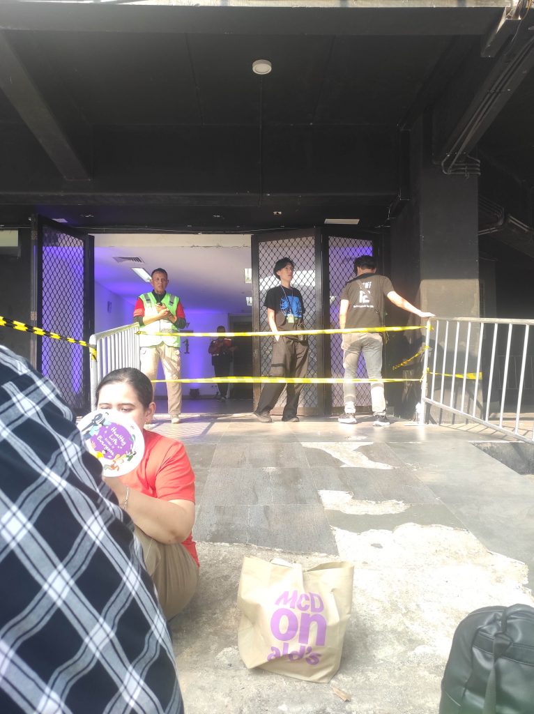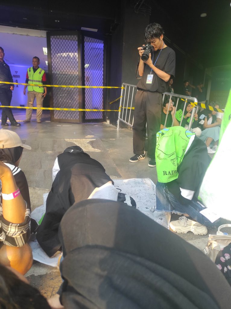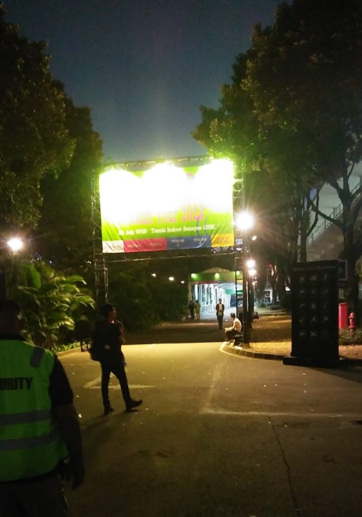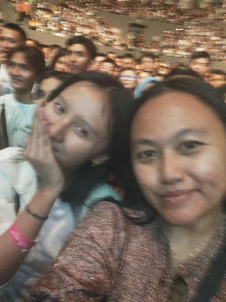 The main gate was opened at 5 p.m. The staff said that we who were standing in the first line should not run because if we were running, the back line would follow us to run. So, okay, we were following the rules. We were walking patiently to come into the venue, but suddenly the back line ran and pushed us. Me and some girls were pushed and fell down, but I quickly got up and grabbed my fellow stranger friend beside me, and I remembered that she is a Japanese fan who came far away to Jakarta to attend the show because she did not get a ticket in Japan. I ran to the front gate, got standing in third, and then moved to the second row.