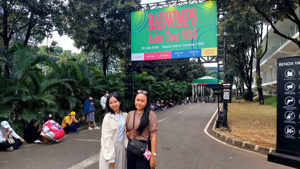 I went to the venue around 1 p.m. I went with my fellow friends, whom I met on the RADWIMPS Indonesia WhatsApp group. We haven’t met before, so this was our first time meeting. We came from different cities in Indonesia. Even I met some fans from Japan and Philipines. Maybe next time RADWIMPS should make a show outside Jakarta too, such as Yogyakarta or Surabaya. When I’ve arrived in venue, I thought there would be a lot of lines to get into the first gate. It turned out that when I came, the queue was still quiet. So that my friends and I can queue first. Lucky us.