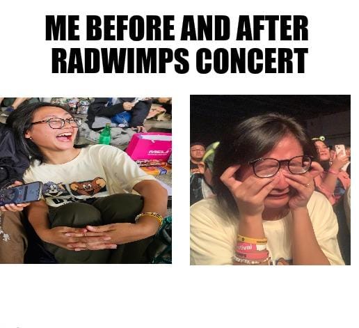 Ten months later after their last show in Jakarta, not even a year had passed, RADWIMPS held their show again in Jakarta this May, 2024. Jakarta was initially left out of the list. However, at the end, Jakarta was added to the list. We had mixed feelings, between happy and sad. We are happy and excited because they came back, but sad because it happened too soon. Due to the high cost of the tickets and the additional money required for our flight or train ticket to Jakarta, several of our friends were unable to attend the concert.