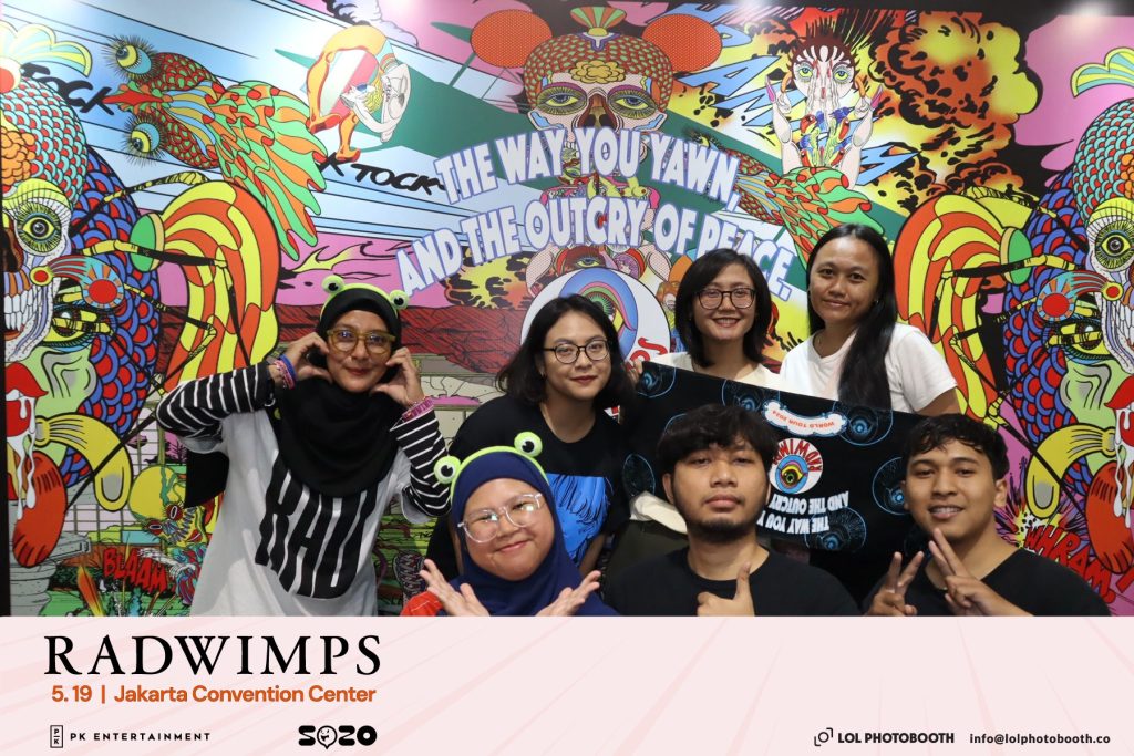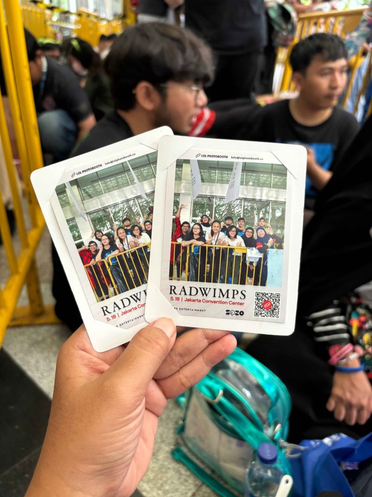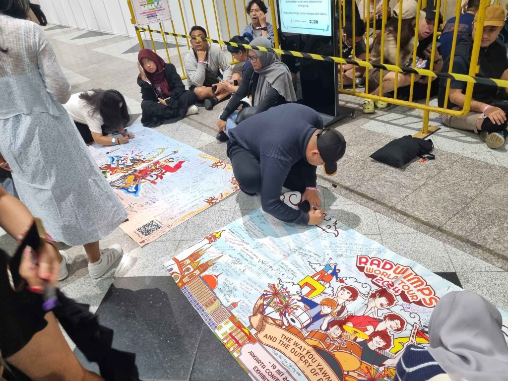The concert ended at 10 p.m. We are still inside the venue to take some pictures with artwork background on the screen. After taking some pictures, we moved out and took some photos and videos on the outside. Some of us were interviewed by some media and by promoters because some of us are admins of IG @radwimps_id and admins of the WhatsApp group, which has around 350 members.