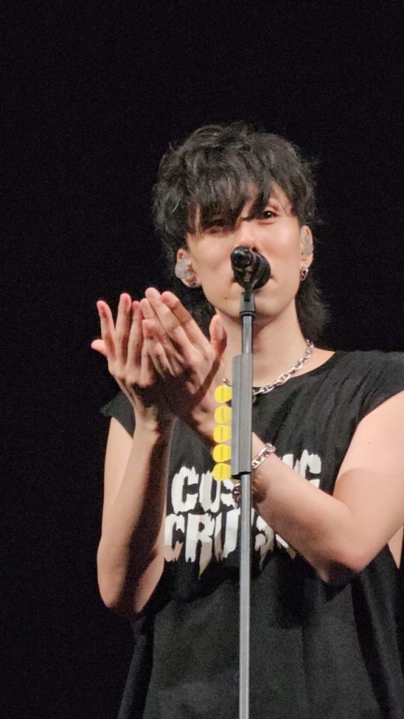 “Lights Go Out,” the first song, instantly got us to sing and dance. The sound and lighting were excellent. There were screens at the left and right stages as well. Compared to last year, when we didn’t screen at the venue, this year was better. It was really cool when Yojiro played his synth while dancing.