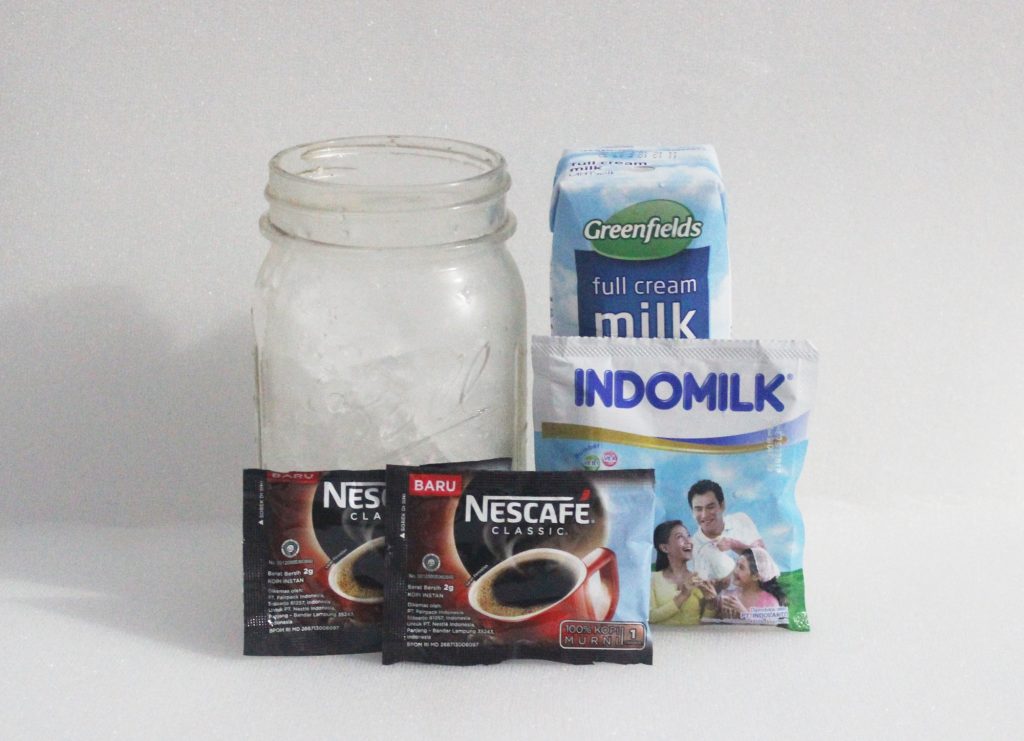 • 1 sachet SKM (Susu Kental Manis), merk apa aja boleh.