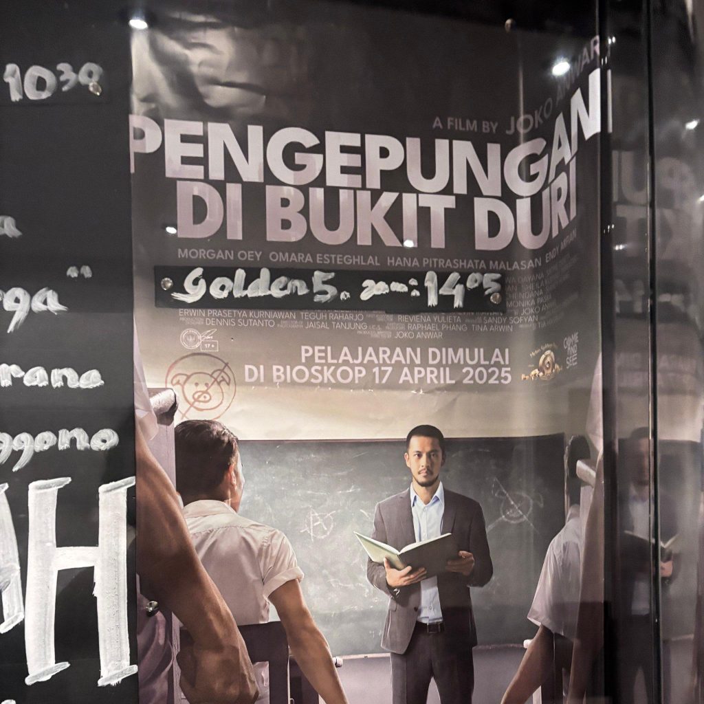 Pengepungan di Bukit Duri merupakan film terbaru dari Joko Anwar yang tayang perdana pada 17 April 2025 kemarin. Saya malah baru mengetahui keberadaan film ini dari beberapa updated stories teman di Instagram, dan saat itu juga saya langsung cek trailer-nya yang ternyata cukup menjanjikan, yaitu thriller dengan tema rasisme di Indonesia yang cukup sensitif dan kondisi kacau balau Jakarta dalam dystopia. Pada hari kedua penayangan akhirnya saya putuskan untuk menontonnya di malam hari bersama suami. Suasana bioskop sangat ramai karena bertepatan dengan long weekend dan tayang bareng dengan beberapa film lokal yang lain yang cukup banyak peminat.